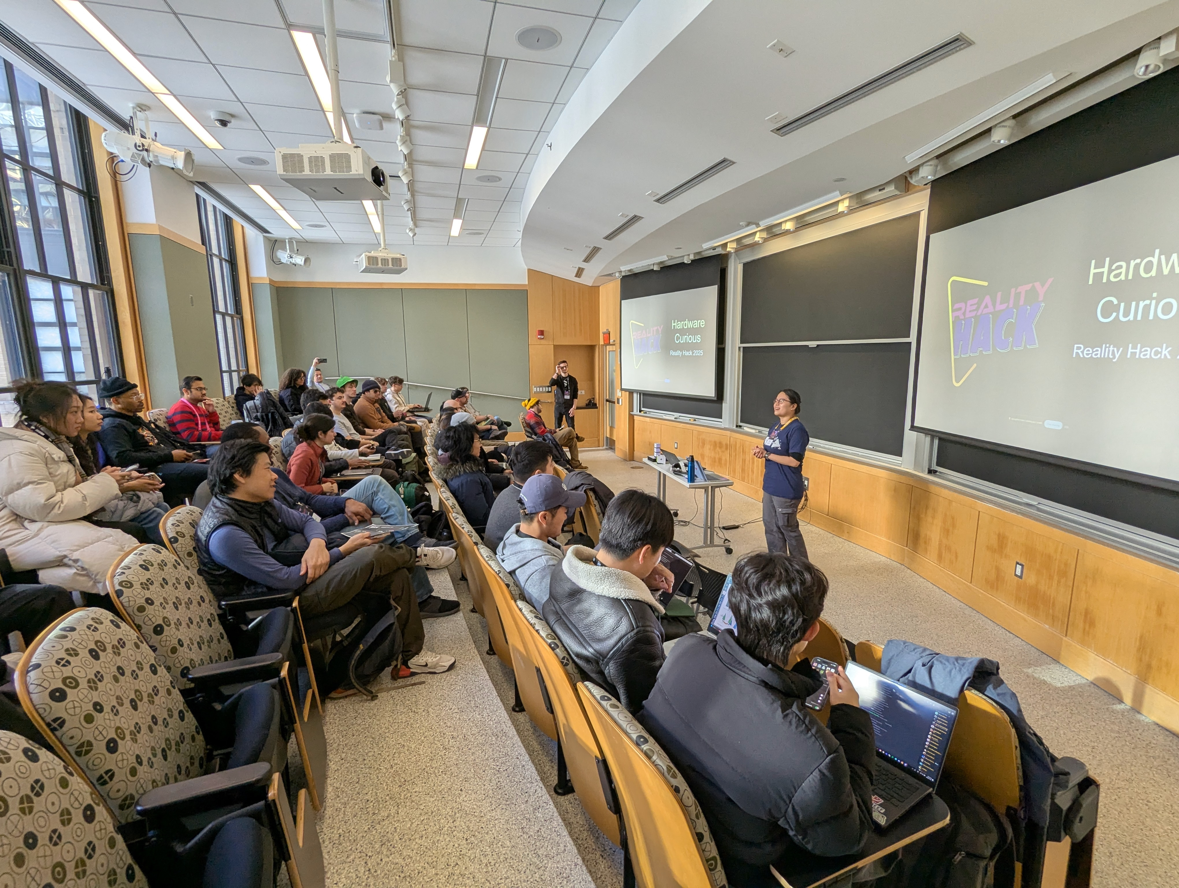 MIT Reality Hack is an annual immersive technologies hackathon taking place in January at MIT. Teams in the Hardware Hack track merge custom hardware and software with existing virtual/augmented reality devices to create novel applications in haptics, sensing, human-computer-interfaces, and more.